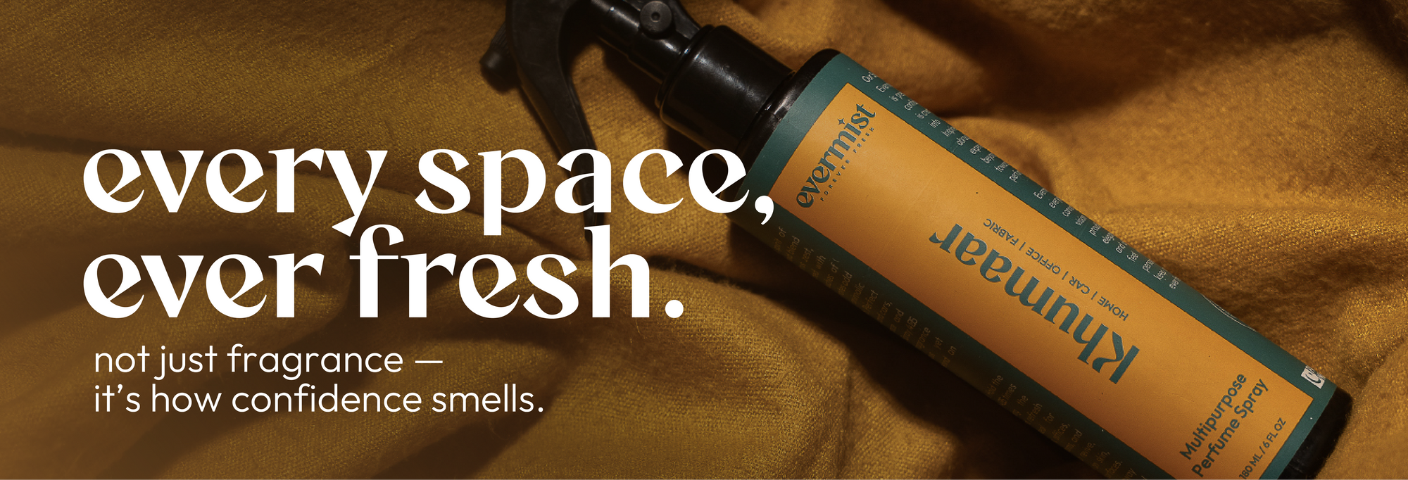 Each Evermist fragrance is crafted as an expression of elegance and mood, transforming everyday spaces into moments of luxury. Our premium collection featuring Mishquat, Khumaar, and Rawaan captures distinct emotions through carefully balanced scent notes. From the warm allure of Mishq to the deep, intoxicating charm of Khumaar and the effortless calm of Rawaan, every mist tells its own story. Hand-poured with precision and artistry, these perfume mists are designed to elevate your surroundings with sophistication that lingers.